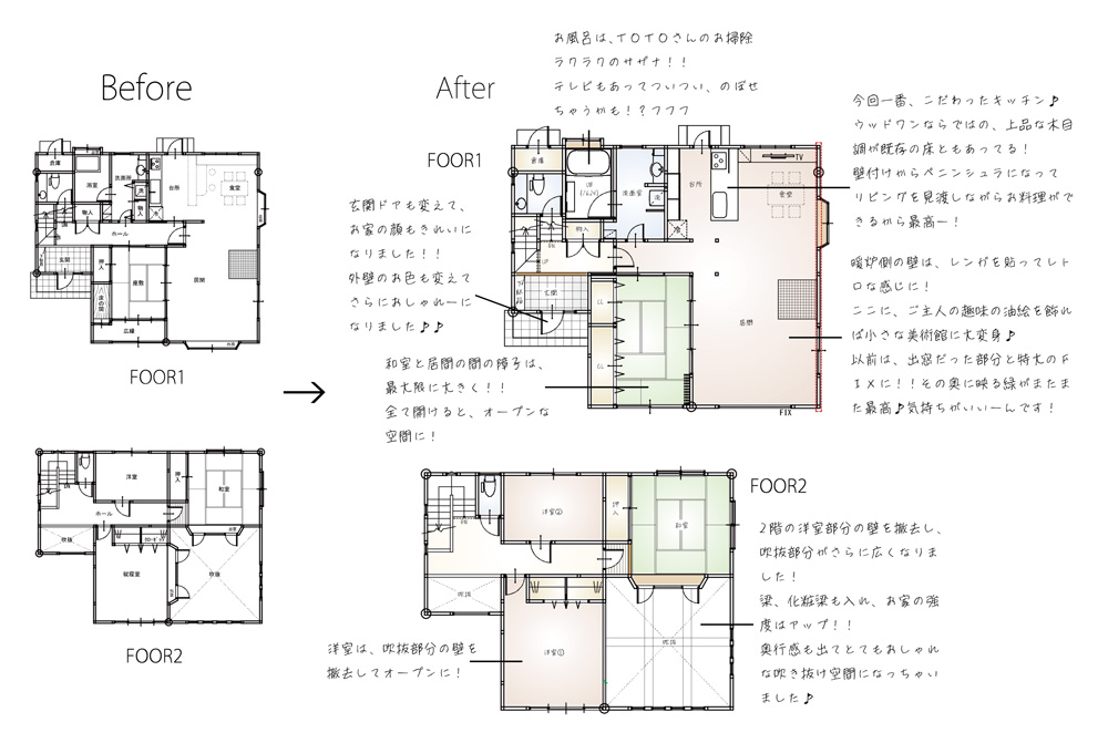 | リフォーム内容 | 戸建フルリフォーム、キッチンリフォーム、バスルームリフォーム、内装リフォーム、外壁・屋根リフォーム | ||